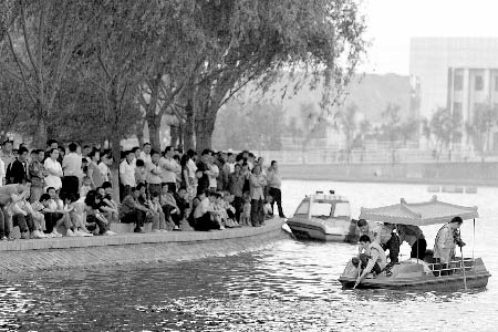 民警張健詢問了旁邊的市民。事發時,天氣很好,湖面能見度也比較好。有兩個家庭正在湖面劃船,一東一西兩只船,離“出事地點”只有10多米。但他們都說沒聽見有人落水呼救。