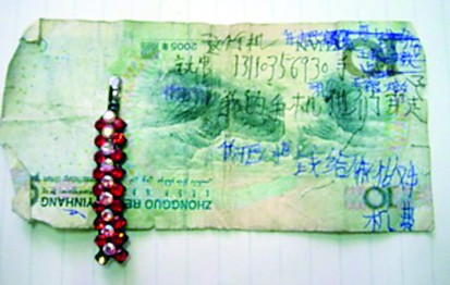陜西省一女孩王某被“洗腦”后,以邀請(qǐng)母親來(lái)滕游玩為名,將母親賈某和9歲的弟弟騙至傳銷窩點(diǎn)。賈某急中生智,在拾元紙幣上寫下求救信息,拋至窗外,在好心人和民警的幫助下,母子三人才得以解救。