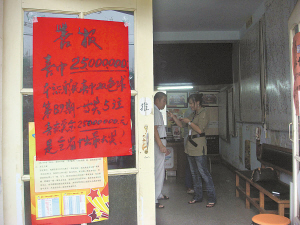 據(jù) “彩票大贏家”投注站店主介紹,這個站在兩年前,曾經(jīng)開出過91.5萬的大獎,“這回刷新紀錄了。”記者注意到,投注站的招牌背景,印了很多“2元=500萬”的字樣,“這下成真的了!”