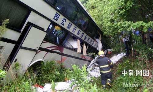 15時01分,車輛到達現場,與之前到場的高速交警和路政部門匯合。此時,急救車也相繼趕到了事發現場。到場后,指揮員立即展開了現場偵察和詢問,經偵察發現,該客車系一輛奔馳雙層臥鋪車,發生事故后,翻落在高速護欄外落差有三米左右的溝壑中。
