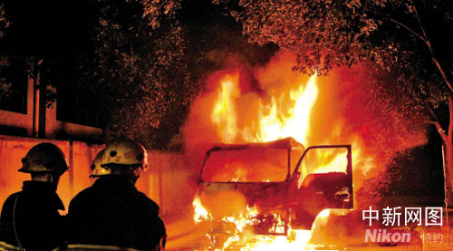 浙江嘉興四名歹徒半夜持刀攔路燒車(圖)