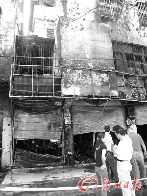 一目擊者稱,他早上上班經過時,大火將鐵門都燒穿孔了,可以聽到里面傳來“啪啪”的聲響,火苗躥上二樓陽臺。