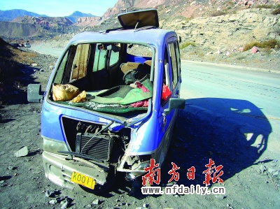 昨日上午,本報記者實地踏訪事發周邊區域。山被炸開的痕跡白花花地暴露在烈日之下。山腳之下,丁學聰老漢的院子落滿了“石頭雨”,院子里的碎石整整裝了2車手扶拖拉機,還沒有清理完。他的33間房子被砸毀20余間,老漢欲哭無淚。就在他的鐵板房內,何老漢被砸破屋頂的石頭砸到腰間,當場死亡。大院的外邊,兩顆兩個籃球大小的石頭將堅硬的地面砸出兩個深坑。