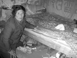 他們的住處,是一間大約10平方米的小屋。在這間局促的小屋中,擺了一張舊雙人木床,環(huán)顧四周,似乎再無擱腳之地。孫秀珍熱情地請(qǐng)記者坐下,記者四下看了一圈,才勉強(qiáng)找到一個(gè)學(xué)生使用的老式四腳條凳,一條洗得發(fā)白,已經(jīng)看不出顏色的舊枕巾,被線繩牢牢地纏在凳面上。