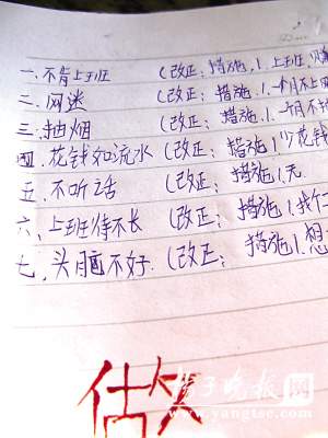 記者在浩浩家中看到了浩浩寫的一些自己的缺點(diǎn):“不肯上班”“網(wǎng)迷”“抽煙”“花錢如流水”“不聽話”等等,這些字跡可能是浩浩生前最后的筆跡,也說明了他自己也意識到了自己的缺點(diǎn)。浩浩家的一位鄰居告訴記者,黃德林夫妻四年前離婚,浩浩平時和黃德林生活,但父子兩人在一起時間并不多。