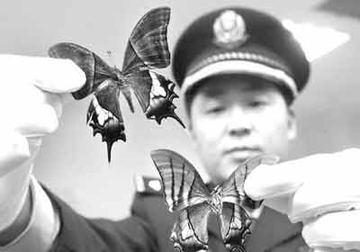 野外生存數(shù)量與大熊貓差不多的金斑喙鳳蝶,人們?cè)诖笞匀恢袔缀跻?jiàn)不到。但讓鄭州海關(guān)緝私警察為之一驚的是,他們?cè)诓楂@的國(guó)際航空掛號(hào)信里,不僅見(jiàn)到了24枚喙鳳蝶標(biāo)本,還見(jiàn)到了極為罕見(jiàn)的2枚金裳鳳蝶標(biāo)本。記者今天從鄭州海關(guān)獲悉,他們成功偵破了一起利用郵遞渠道走私珍貴蝴蝶標(biāo)本出境的案件。