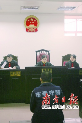 由于關押疑犯的廣州市第三看守所距離海珠區法院較遠,運送疑犯的警車10時許才到達法院,原定于9時30分開庭的此案于10時11分正式開庭。疑犯黃新在進入審判庭之時,露出短暫的笑容。