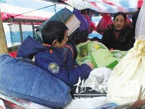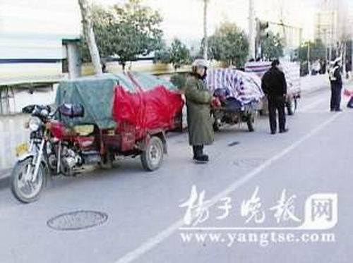 記者聞訊后,隨即趕到現場,3輛“馬自達”被交警攔停在路邊,“馬自達”車主一直在向交警訴苦,讓交警放他們一馬。“馬自達”都是安徽牌照,車廂被油布包裹嚴實,掀開油布,里面猶如臥鋪車廂,鋪著厚厚的被子,幾個人鉆在被窩里聊天。據“馬自達”司機劉某說,他和另外兩名司機是很要好的老鄉,他們都是安徽黃山市歙縣人,近幾年一直在江蘇溧陽打工,主要是幫建筑工地拖運垃圾。大家在溧陽呆得時間長了,小孩們也在當地上學。春節將至,他們預備早點回家過年,可溧陽是個小城市,沒有直達他們老家的客車,他們便到常州市區買票。他們本想坐火車到黃山市,然后轉車去歙縣,可沒想到排隊兩個多小時,等來的卻是“票賣空了”這句話。隨后,他們又急忙趕到常州汽車站買票,還是沒買到票。無奈,他們只好回暫住地另做打算。