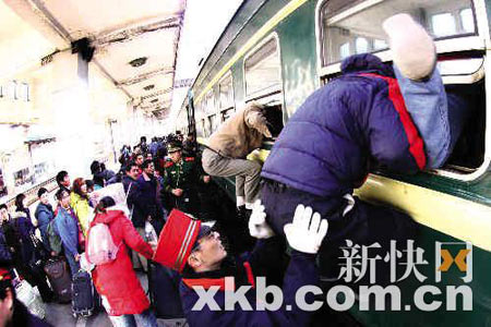 對于很多坐火車回家的買到火車票已經是一件幸事,還有不少網友在為買票撲騰和痛苦。網友“FBI阿磊”講述了一個諷刺故事:“在公交車里聽到別人打電話到電臺點歌,有一個男人打電話進去說:‘我是外地人,現在回家的車票買不到了,只好在廈門過年。我想點首歌。’主持人問他:‘你想點歌送給誰?’他回答道:‘我想點一首陳小春的《算你狠》,送給鐵道部工作人員以及所有票販子。’”