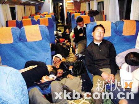 這位網友“南慕整容”在天涯社區的這篇題為《說說你坐春運火車的事》的帖子中,講述了坐火車的感受與故事。他認為坐火車的一大特點是臟,尤其是春運。他描述道:“平日里我們用人均面積來算人居環境,到了火車上得換成人均體積,擠過火車的人都有同感,座椅底下是人,行李架上是人,廁所能擠進去六七個人。我坐臥過的就有地板、座椅頂端、洗手臺子、車廂接口處的垃圾袋子、行李架,無所不用其極。偶爾也有幸福的時候,有次去廣州,一個十七八歲的俊俏大姑娘實在熬不住,趴在我大腿上睡了一晚,來接站的哥們聞之艷羨不已,他不知道,我的腿都給壓腫了。”