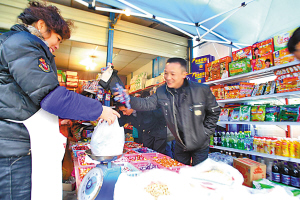 在這個市場里,幾乎所有的年貨都能買到:糖果、瓜子、蔬菜、水果、鞭炮、煙酒……連網吧和復印店,都能在市場里找到。