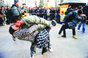 身邊的對手相繼落地,4號先生還在堅持。當主持人宣布他是唯一還沒倒下的人時,他仍鉚著勁站了一會兒。“她真的挺沉的。”放下女友,4號先生重重地喘了口氣,女友則給了他一個大大的擁抱。這對4號情侶最終贏得了一部摩托羅拉手機。“手機送給女朋友,當做情人節(jié)禮物。”4號先生摟著女友,大聲地宣布。(記者王卡拉 實習生魏楠)