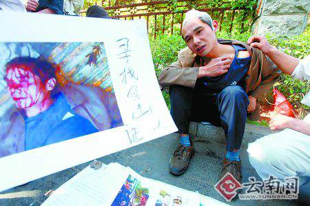 記者從昆明醫學院第一附屬醫院的檢查單上看到,朱其兵頭部外傷,伴有頭暈、頭痛、視力模糊等癥狀。在整個采訪過程中,朱其兵一直抱著自己的頭,并不時用手去摸右邊肋骨。他告訴記者,自己的頭和右肋一直隱隱作痛,右邊的鎖骨附近曾經斷過,現在估計是舊傷復發了。由于沒錢,醫院要求做的檢查他都沒法做,到底還有些什么傷、傷到什么程度也搞不清楚。