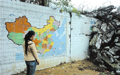 據(jù)北川中學高三年級組組長唐高平老師介紹,該地圖是上世紀80年代所繪,它所在的墻是學校的一道屏風,客來客往都能見到,地震時校園遭遇毀滅性打擊,墻面也多處被震裂,而這面中國地圖卻沒受到任何損壞。唐老師說,今后建設(shè)地震博物館時,將建議有關(guān)部門保護該地圖,也希望游客能在這面完整、鮮艷的中國地圖前再次感受偉大祖國的遼闊秀美,感受偉大的抗震救災(zāi)精神。(青興海)