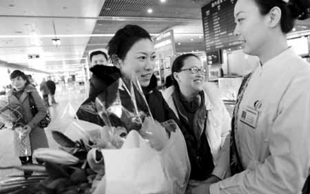 “四川汶川地震女英雄蔣敏來沈陽啦!”2月22日一早,記者聞?dòng)嵹s至沈陽桃仙機(jī)場(chǎng)。來自沈陽大健康體檢中心的醫(yī)護(hù)人員手捧鮮花,專程迎接這名堅(jiān)強(qiáng)的女警花。