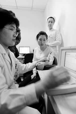體檢開始了:內(nèi)外科普檢、骨密度、人體成分分析……當(dāng)蔣敏接受“腰頸椎”拍片檢查時(shí),她下意識(shí)地用雙手撫了一下腰。見狀,劉群新醫(yī)生熱淚盈眶,她告訴記者,地震發(fā)生后,蔣敏連續(xù)7天7夜奮戰(zhàn)在一線上,搬石板、救戰(zhàn)友,她以常人難以想象的意志力,克服了喪母喪女之痛,用柔弱的雙肩挑起了公安民警的重?fù)?dān)。因積勞成疾,她的腰椎承受了太大的壓力。