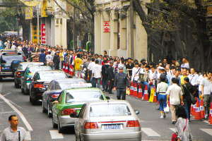 今天上午,廣州市第四批交通協(xié)管員招聘正式報(bào)名,場面十分火爆,僅越秀報(bào)名點(diǎn),就來了近千名應(yīng)聘者(上圖)。