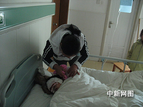 陳尚瓊老人稍清醒些,但也只能躺在床上,還不怎么能說話。剛剛趕來的女兒看著病床上滿面傷痕的老母親心疼不已。