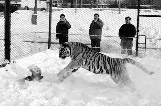 “給老虎吃避孕藥,既為優生又能節省口糧!”3月5日,記者得知這個聽起來近乎滑稽的消息,立即頂著飄飄揚揚的雪花,向沈陽怪坡虎園趕去。