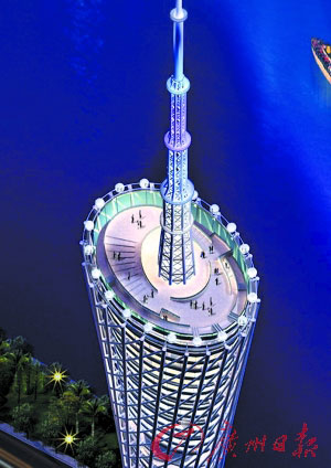 記者昨日從廣州新電視塔建設公司獲悉,16個觀光球艙聯動回轉,臨邊而置的世界最高摩天輪將“站”在廣州新電視塔塔頂。明年國慶節前,市民便可登上摩天輪,把城市新貌盡收眼底。