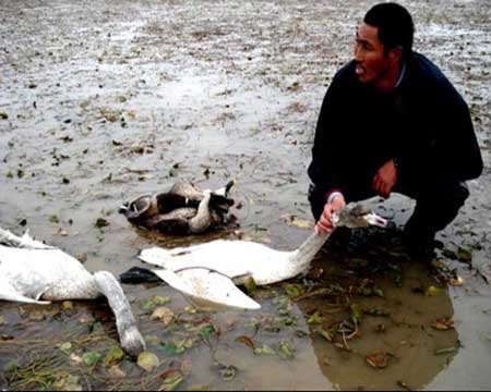 鄱陽(yáng)湖長(zhǎng)170公里,寬70余公里,在這樣的廣闊的濕地抓捕罪犯,由于人力和裝備所限,打擊受到了局限。即便是這樣,江西森林公安今年也加大了打擊的力度,今年可以說(shuō)是江西的森林公安查獲捕殺天鵝案件最多的一年。其中南昌市森林公安局查獲了一起販賣(mài)21只活天鵝的案件,堪稱(chēng)捕捉販賣(mài)天鵝的大案。記者在江西采訪(fǎng)的幾天里,經(jīng)常會(huì)聽(tīng)到某某因捕殺天鵝被通緝,哪個(gè)哪個(gè)派出所又抓住了一個(gè)捕捉販賣(mài)天鵝的犯罪嫌疑人,即便在這樣嚴(yán)厲打擊的情況下,記者前往鄱陽(yáng)湖察看,還是看到了長(zhǎng)達(dá)數(shù)公里的天網(wǎng),捕殺天鵝的現(xiàn)場(chǎng)讓人觸目驚心,那么鄱陽(yáng)湖里捕殺天鵝有著什么樣的現(xiàn)狀,還有哪些利益鏈條,明天的《東方時(shí)空》將繼續(xù)揭開(kāi)黑幕。(中央電視臺(tái))