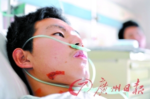 昨日中午,湖北沙市大學(xué)大三學(xué)生尹浩躺在南海松崗醫(yī)院病床上,當(dāng)回憶起前天下午那噩夢般的一幕時(shí),他禁不住再次黯然神傷。這一切,源于光天化日之下、發(fā)生在鬧市區(qū)的一起劫案。兩個(gè)血?dú)夥絼偟那嗄辏c年齡相仿的3名狂徒,搏斗了10分鐘后,錢包保住了,而自己的表弟高斌卻永遠(yuǎn)地離開了……