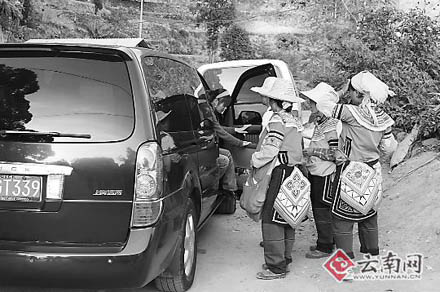 記者發(fā)現(xiàn),在老虎嘴景點的公路邊上,每天都有許多的女童在向游客纏售梯田明信片。只要游客一下車,她們立馬就圍上去,有的可以纏上半個小時,如果有一游客買了其中一人的,其他女童就會立即圍上來纏賣,弄得游客的心情極不愉快。