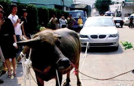 去年7月,她在廣州的鬧市中,上演了一出老牛拉寶馬的“拉風”事件。當時,因為才買不久的寶馬車出故障,馬映華沒有得到滿意和及時的解決而與經銷商發生爭執,一氣之下,她找來了一頭水牛拉著寶馬車在維修點前“示威”。