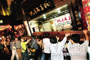 昨晚8時16分許,洪崖洞傳統(tǒng)風貌區(qū)四樓天成巷438號至440號之間一長8.27米、寬1.1米的商鋪飛檐及附屬物發(fā)生垮塌,砸傷5人,其中傷勢較重者1人。