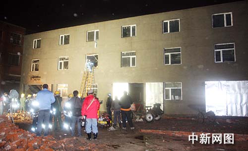 事故發生時,室內有10名人員,除1人當場死亡外,有8人經消防官兵現場救援脫離危險,救援人員還冒著樓體隨時可能再次坍塌的危險,使用起重氣墊、沖擊錘等工具對被坍塌的樓板壓住的1名工人進行了近2個小時的全力救助,傷者被安全解救,并被及時送往醫院救治,目前已經脫離生命危險。