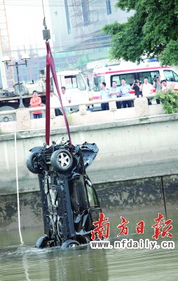 據了解,前日下午5時許,肇事車輛內4人乘坐奔馳車,趕到廣州唱K喝酒之后,開車返回廣州某知名大酒店的途中,發生事故,車子沖進珠江。