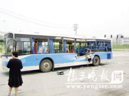 小徐是南京郵電大學大一的新生,昨天上午10點多鐘的時候,他剛從學校門口出來,就上了這輛97路公交車。車上的人并不多,后面還有位置,小徐便找了一個靠門的位置坐了下來。公交車在駛離南京郵電大學公交站臺后,繼續向南京財經大學方向行駛,在通過兩所大學中間的一處十字路口的時候,一輛大卡車筆直地向公交車的中部撞來。“哐”的一聲,卡車的左邊車頭撞進了公交車的中部偏后方。乘客瞬間從座位上被撞到了走道中央,地面上全是碎玻璃碴,不少乘客滿臉都是血,小徐的嘴巴被碎玻璃碴劃傷。