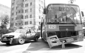 記者趕到現場看到,兩車均并排打斜停在十字路口中間,傷者已被“120”急救車送往醫院救治,交警正在事故現場進行勘察。出租車左側車輪以及車體被撞變形,112路公交車前部車體被撞壞。40分鐘后,交警部門調來一輛拖車將事故車輛拖離現場,此路段交通才恢復正常。