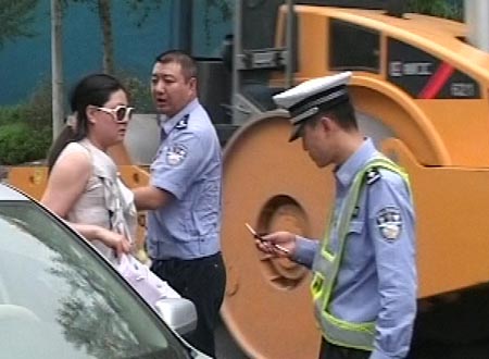“當(dāng)我走近后,才發(fā)現(xiàn)這輛車的女司機(jī)沒有系安全帶。”葉警官說,他當(dāng)即要求女車主出示駕駛執(zhí)照,但遭到拒絕,而女車主在交通指示燈變換后,快速駕車逃離。“我當(dāng)時(shí)把拿著一沓罰單的手搭在了她的車窗上,她突然起車后,罰單一下子掉進(jìn)了她的車?yán)铩!?/p>