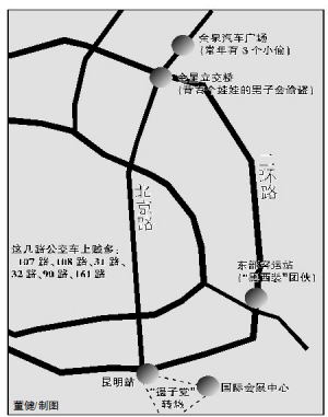 “真有那么夸張,親眼所見。”對于活動在東部客運站的“黑西裝”團伙,帖主強調“親眼所見”的同時,還用了“夸張”一詞描述。帖主說,你提包上車時“黑西裝”一哄而上,伺機下手。而在金星立交橋附近,則有個三年如一日背著個不會長大的娃娃的男人,很好認,(大家要)見他就閃!還有,國際會展中心那里,至少兩個人……遇到在昆明站轉悠的“鑷子黨”,不要把錢放在外衣口袋里。