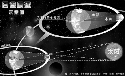 22日我國將出現500年一遇的大日食奇觀。整條日全食帶將首先從不丹國西邊進入我國西藏南部和云南西北部,隨后掃向四川和重慶,接著進入湖北和安徽;再向東掃向江蘇和上海,最后將從浙江的舟山群島入海而東去。被日全食帶掃過的地方都能目睹到日全食盛景。這次日食是從1814年至2309年在中國境內全食持續時間最長的一次日全食,最長可超過6分鐘。