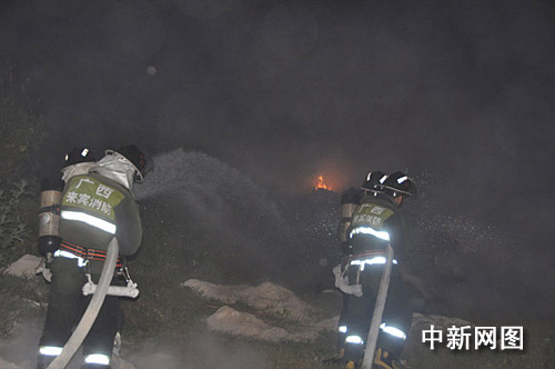 中新網來賓8月10日電 (陳小勇 王剛) 8月10凌晨1時30分許,廣西來賓市興賓區物資總公司炸藥庫附近,一堆不明物體突然發生燃燒并產生大量煙霧,火勢逐漸向四周蔓延,嚴重危及到倉庫內存放的10噸炸藥。