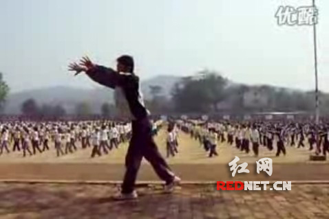“里面很多動作比較搞笑,尤其是踢腿運動中模仿足球的動作,為了鍛煉身體,本人嘗試過學習整套動作,做完全身起雞皮疙瘩,汗毛直豎,不知道該校的孩子們怎么能天天做……”10日,網友“湘水悠悠”在紅網論壇發表題為《超雷人的湖南寧鄉四中自編廣播體操》帖子,一段寧鄉四中學生在老師帶領下做學校自編廣播體操的視頻讓網友大呼雷人,并戲稱為“最雷人廣播操”。