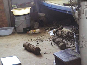 昨天中午12點(diǎn)左右,一個收廢舊的來到這家工地,說是收廢舊,其實(shí)是想收點(diǎn)文物,因?yàn)楣さ亟?jīng)常能挖出些瓶瓶罐罐的。一個民工說他有好東西,就把收廢舊的帶到了宿舍,從床下掏出個銹跡斑斑的東西,說這些陶罐能值多少錢啊?收廢舊仔細(xì)一看,哪里是什么陶罐,明明是枚炮彈,而且床下還有3枚。乖乖!敢情前天一夜我們都睡在炮彈上,同宿舍的民工都炸了。工地的安全員趕到,立刻報警。不久警察趕到,封鎖了現(xiàn)場,并通知了排爆大隊。這4枚炮彈長約40厘米,直徑約20厘米,這位民工說是前天夜里施工時,挖土機(jī)挖出來的,他以為是陶瓷罐,就放在了床下。警察說炮彈里是有火藥的,但因?yàn)殇P得嚴(yán)重,還辨認(rèn)不出是什么炮彈。這些炮彈很不穩(wěn)定,雖然很少爆炸,但遇到高溫或撞擊就難說了。下午1點(diǎn)鐘排爆大隊趕到,將炮彈帶走。 (吉啟雷)
