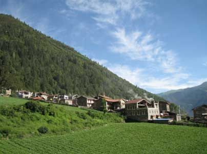 梭磨是出了名的美女之鄉,原因之一是山川秀美,秀地出美女。梭磨鄉位于鷓鴣山西側,森林茂密,山谷靜謐,溪流清澈。國道317沿著梭磨河穿過幽深的梭磨河大峽谷,每到秋季,兩岸數十里彩林遮天蔽日,讓人驚絕。在森林、草坪環繞的山谷,一個個美麗的藏寨宛如世外桃園,在田間勞作的美女抬首可見。