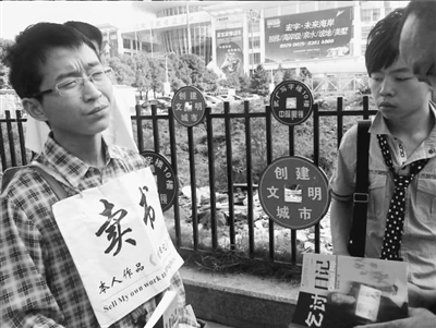 昨日,被網(wǎng)民稱為“史上最牛乞丐”的夏海波,前胸掛著賣書招牌,后背貼著“行乞告白”,站在武廣門前簽售他的15萬字小說《乞討日記》。市民紛紛掏錢購(gòu)買,并請(qǐng)他在書上簽字“留念”。