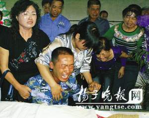本報(揚子晚報)《為神圣一刻,父子生死等候54天》報道發出后,連日來在全國產生了很大反響,成千上萬的網友和讀者被袁亞萍的大義、堅強所深深感動,稱她為“偉大母親”。58天編織善意謊言,58天獨自忍受煎熬。昨天,母親袁亞萍終于等來了自己期盼的時刻——兒子王震在勝利完成首都國慶閱兵任務后,光榮返回家鄉大豐。在得知真相的那一刻,王震50多天來對父親無限的牽掛,瞬間化為無盡的哀痛。當他得知母親為了完成對自己承諾,將爸爸遺體從山東運回家鄉存放58天,并編織一個個謊言,就是為了讓自己順利完成受閱任務時,這位堅毅的軍人再也忍受不住內心的悲痛,和媽媽抱頭痛哭……
