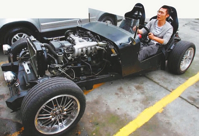 “半年前我一個好朋友興趣大發(fā),準備自己造車,首先弄個車架、發(fā)動機和手動變速箱……”昨日,網名為“圣之夜 ”的網友在四川某汽車論壇上發(fā)帖稱,他的朋友制作了成都首輛DIY(自己動手)漂移車。該網友上傳了一組反映該汽車組裝全過程的照片。此外,還有一段該車不久前在金港賽道上玩漂移的視頻。從照片中記者看到,這是一輛酷似老爺車的黑色敞篷車,汽車引擎、油箱、車座等全部裸露在外,車座是賽車椅子,車座兩旁沒有安裝車門,真可謂全敞篷。
