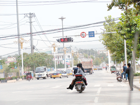 10月8日,一位從華山大街向東行的外地司機把車停在民生街丁字口的紅燈前,不知道如何是好。原來前方的紅燈亮著,但是旁邊的藍牌子上卻寫著“紅燈亮時 直行通過”,他看著身邊的車既有飛馳通過的,還有停車觀望的,更多的是半停半走猶豫不決的。所以不知道該怎么辦。而渭南的出租車司機老胡說,這個紅綠燈堪稱“最牛”,設立得根本就不科學,設立這么一個牌子,難道旁邊還要再加個牌子說綠燈亮時繼續通行?當地人大都明白,這個紅綠燈設立的目的是限制向北拐的,只要把紅綠燈設置個向北的箭頭就可以了,而弄個紅燈加個說明有些自相矛盾。記者查閱《中華人民共和國道路交通安全法》,第二十六條規定:“交通信號燈由紅燈、綠燈、黃燈組成。紅燈表示禁止通行,綠燈表示準許通行,黃燈表示警示。”