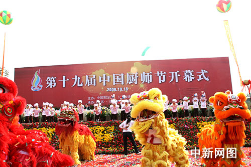 中新網揚州10月18日(記者 崔佳明)第19屆中國廚師節在中國淮揚菜之鄉揚州盛大開幕。國務院原國務委員兼秘書長、第十屆全國政協副主席王忠禹、水利部原部長、第十屆全國政協常委、民族宗教委員會主任鈕茂生、國家商務部副部長姜增偉、原商業部副部長張世堯、世界廚師聯合會主席古德穆德森、中國烹飪協會會長蘇秋成、揚州市委書記王燕文、代市長謝正義和參加首屆中國市長餐飲發展論壇的19個城市的市長和嘉賓以及來自各省市餐飲行業的負責同志和廚師代表出席開幕儀式。