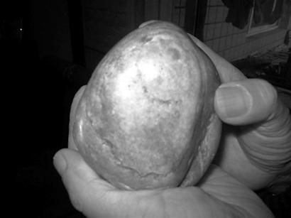 記者注意到,這塊黃白相間的石頭形狀與我們從書中看到的馬克思頭像十分相似,有“馬克思的嘴”、“馬克思的鼻子”、“馬克思的胡須”。“這些圖案都是天然生成的,我運氣太好了。”為了保護它,陳國良還特意在石頭表面抹了一層營養霜。據陳國良介紹,“馬克思”是9月4日他在人民北路一段路口撿到的,他準備終身收藏。(胡莉)