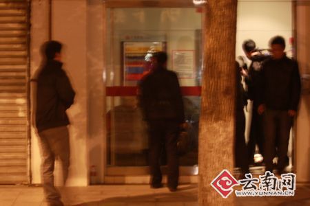 發生案件的中信銀行自助銀行位于昆明市鼓樓醫院門口。記者趕至現場時。事發現場已被警方封鎖,警察和特警正密切監視著自助銀行內的舉動。警方還對昆明市北京路與穿金路交叉口(圓通大橋路口)與北京路龍騰酒店一段道路實施了雙向交通管制。不過,在交警的疏導下,交通仍較順暢,南北雙向交通均未出現堵車現象。現場聚集了不少圍觀人員,執勤民警不停地勸說大家盡快離開,不要圍觀。