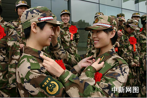 今年是女兵征集辦法改革的第一年,也是全國普遍面向社會征集女兵的第一年,建國60周年閱兵式上女兵的颯爽英姿,更加催生了這股“女兵熱”。記者從華東師大了解到,到報名截止日該校共有兩百零九名女大學生報名參軍,創該校歷年之最。最終圓夢的46名女大學生有來自軍人世家、四川災區,也有首批免費師范生。