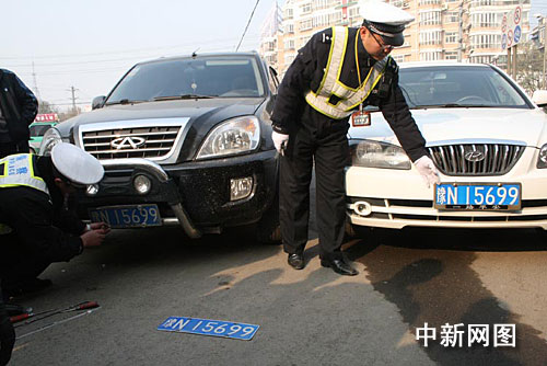 據交警二大隊嚴管街中隊長梁輝介紹,象這種套牌的嚴重交通違法行為,應將車輛暫扣,收繳非法號牌,并處于2000元以下罰款。完