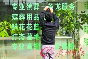 昨天開始,廣州市民政部門會同市公安、交委、衛(wèi)生、工商、物價等部門展開兩天的聯(lián)合行動,集中整治殯葬服務(wù)代理市場。檢查中發(fā)現(xiàn)殯葬服務(wù)中介公司多打出提供“一條龍辦喪服務(wù)”的口號。殯管部門表示,這是違規(guī)而且也是不可以做到的。同時,對于殯葬黑中介“宰”喪主這種雪上加霜、有背社會公德的行為,殯管部門將堅持打擊。